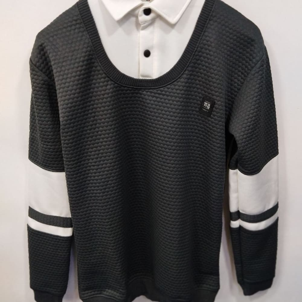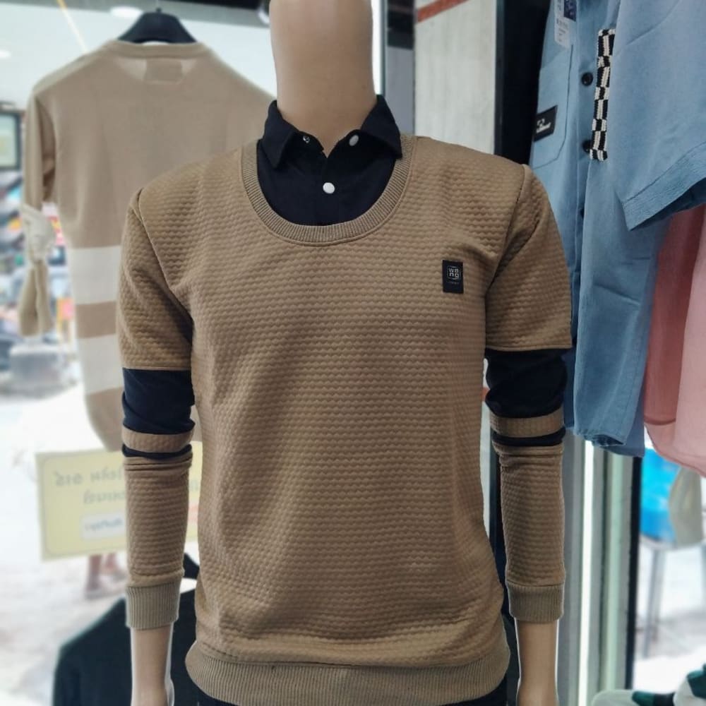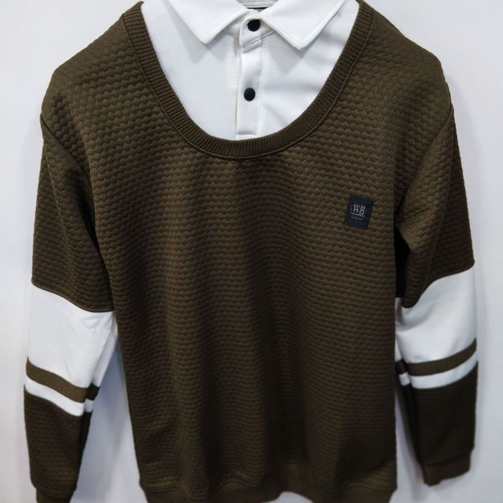 Olive green, White, Brown Sweater