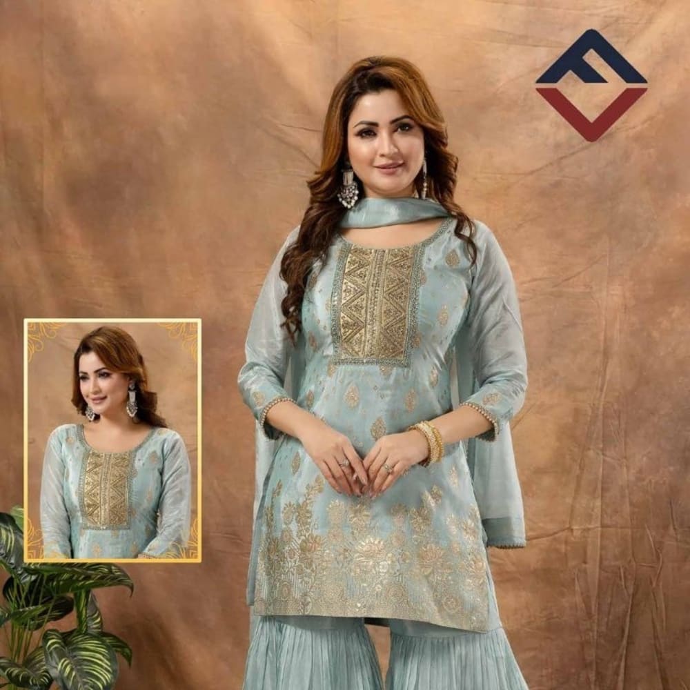 Light Blue and Gold Sharara Suit