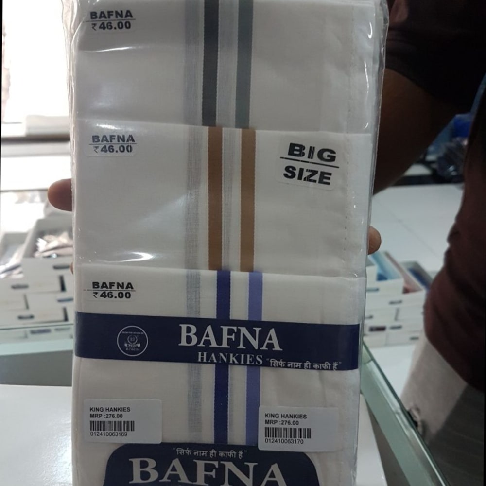 White with stripes in gray, brown, and blue Handkerchiefs