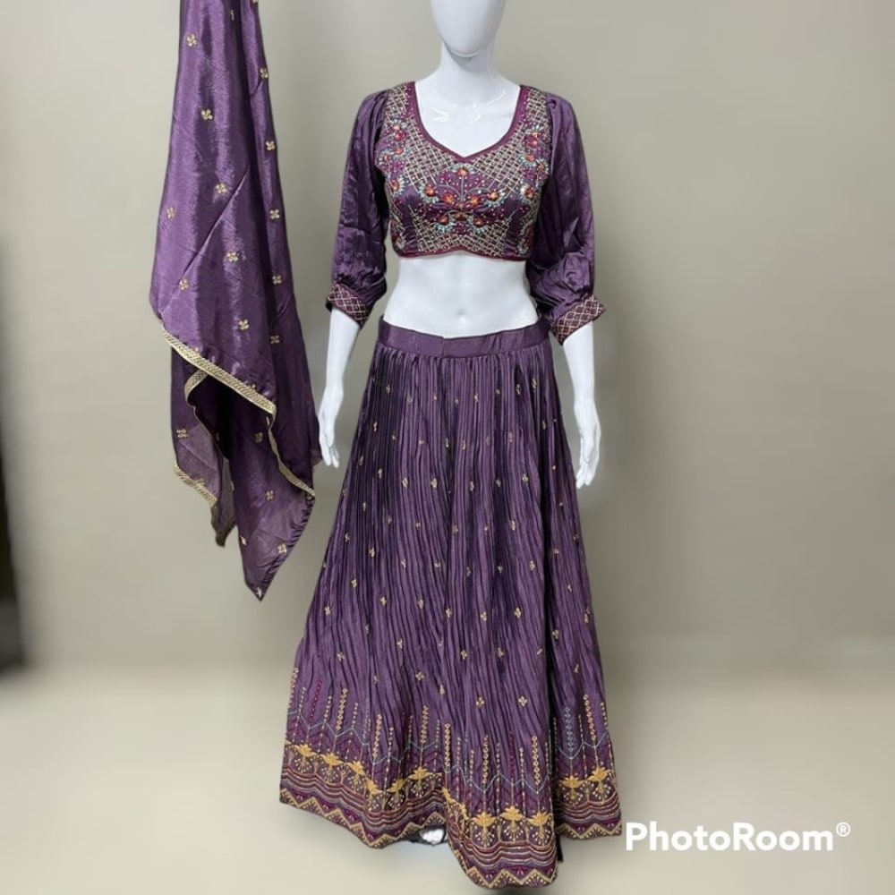 Purple, Gold, and touches of other colors in the embroidery Lehenga Choli with Dupatta