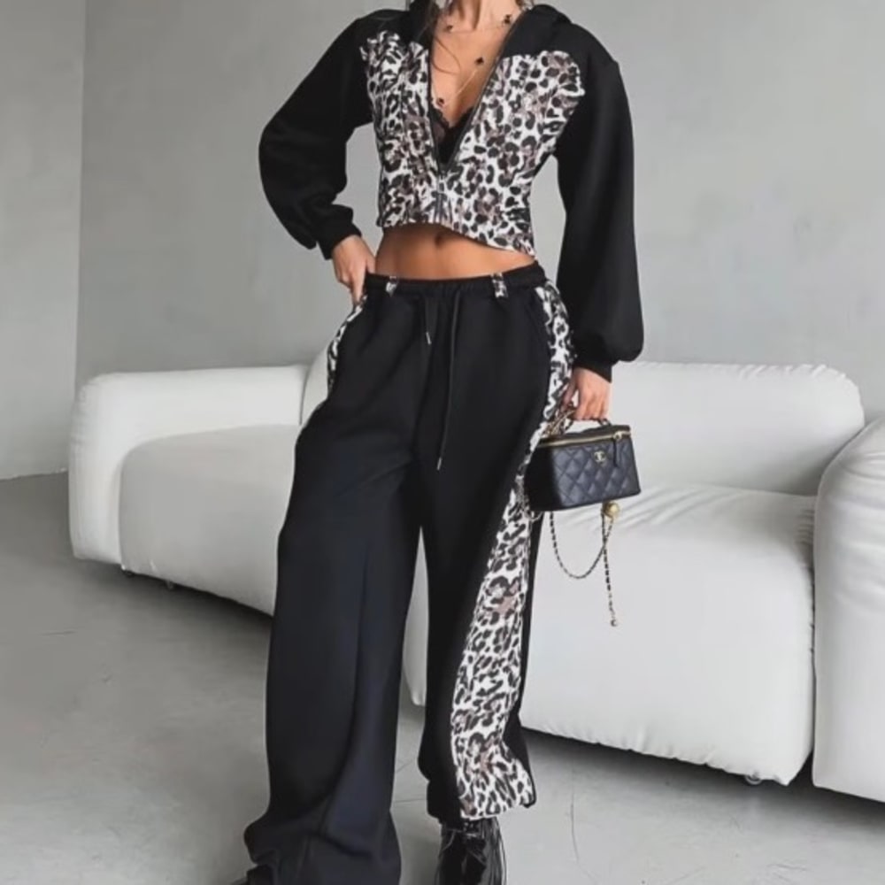 Black, Leopard Print (Brown, Beige, Black) Tracksuit