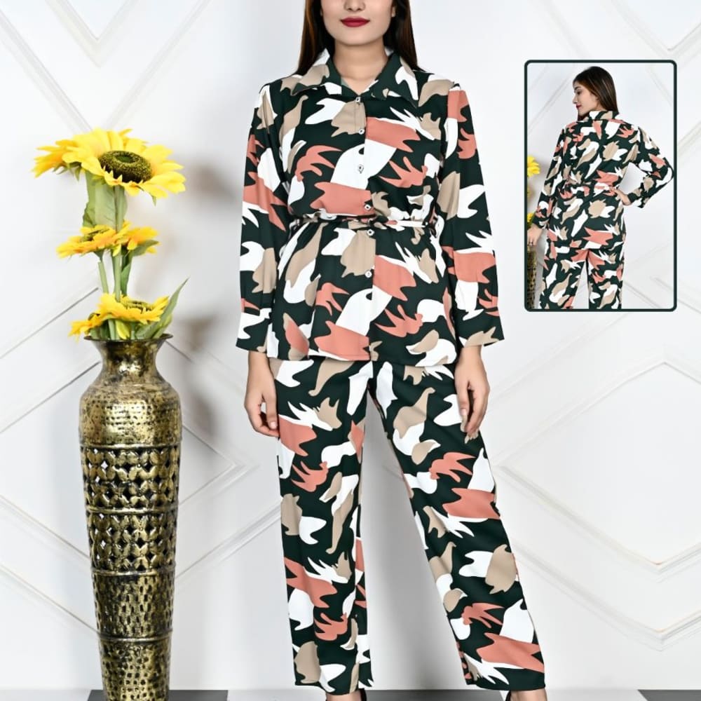 Green, Beige, Peach, White Pajama Set