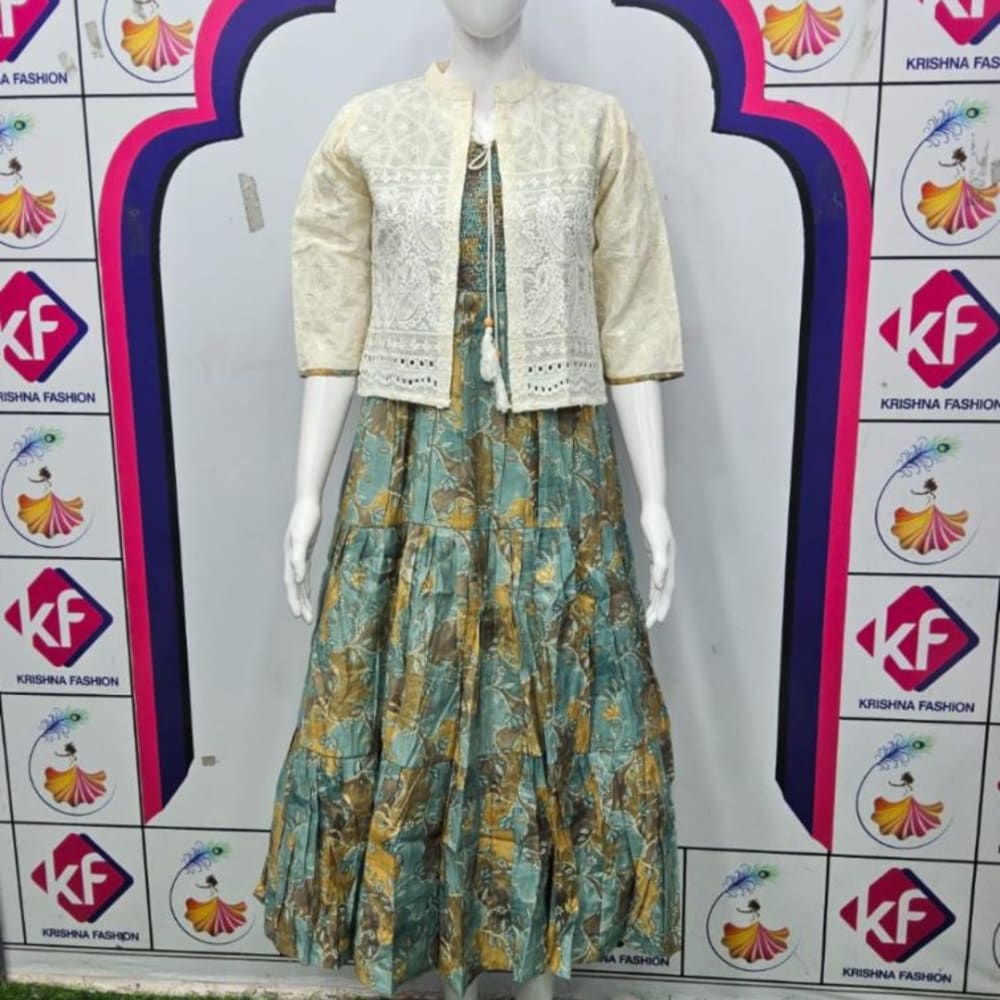 Teal, Gold, Cream Dress with Jacket