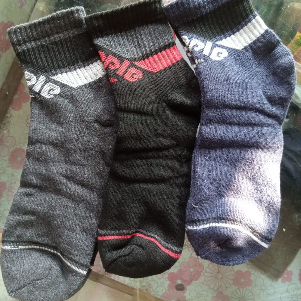 Black, Gray, and Blue with red and white accents Socks