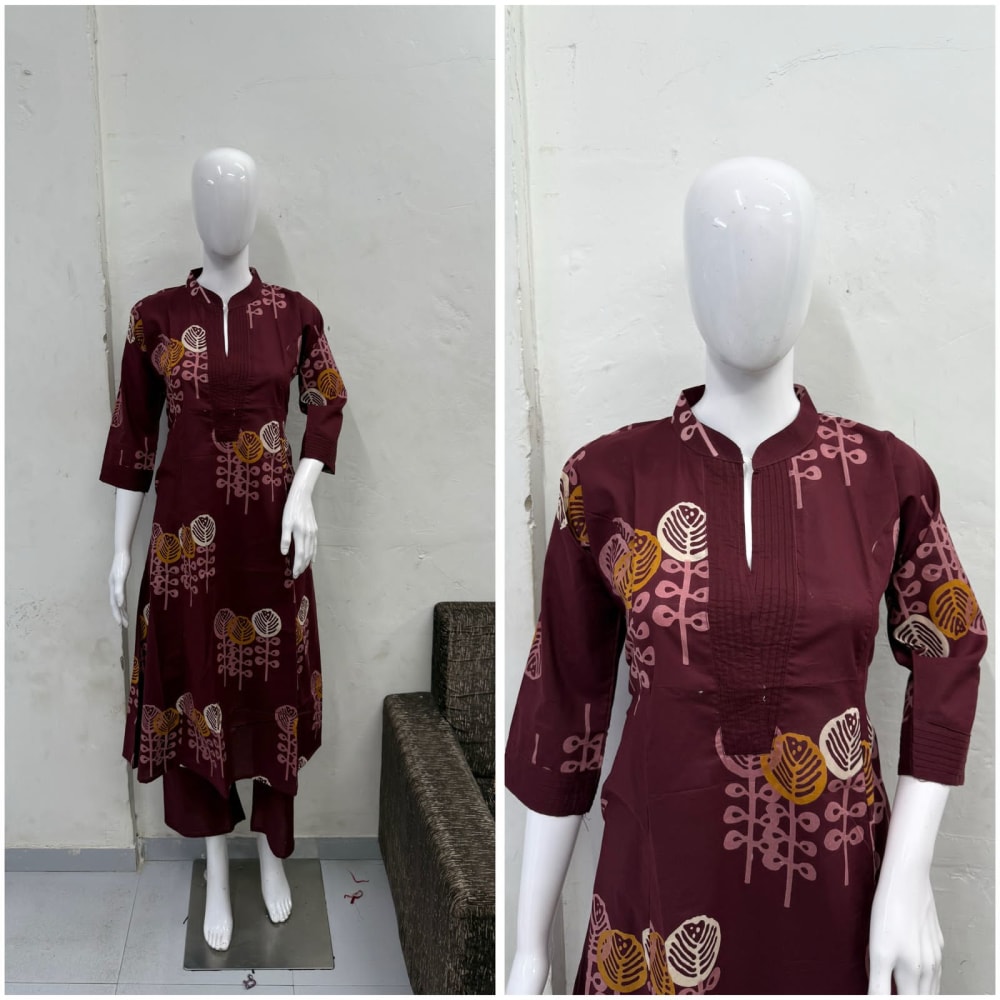 Maroon, yellow, off-white Kurta with pants