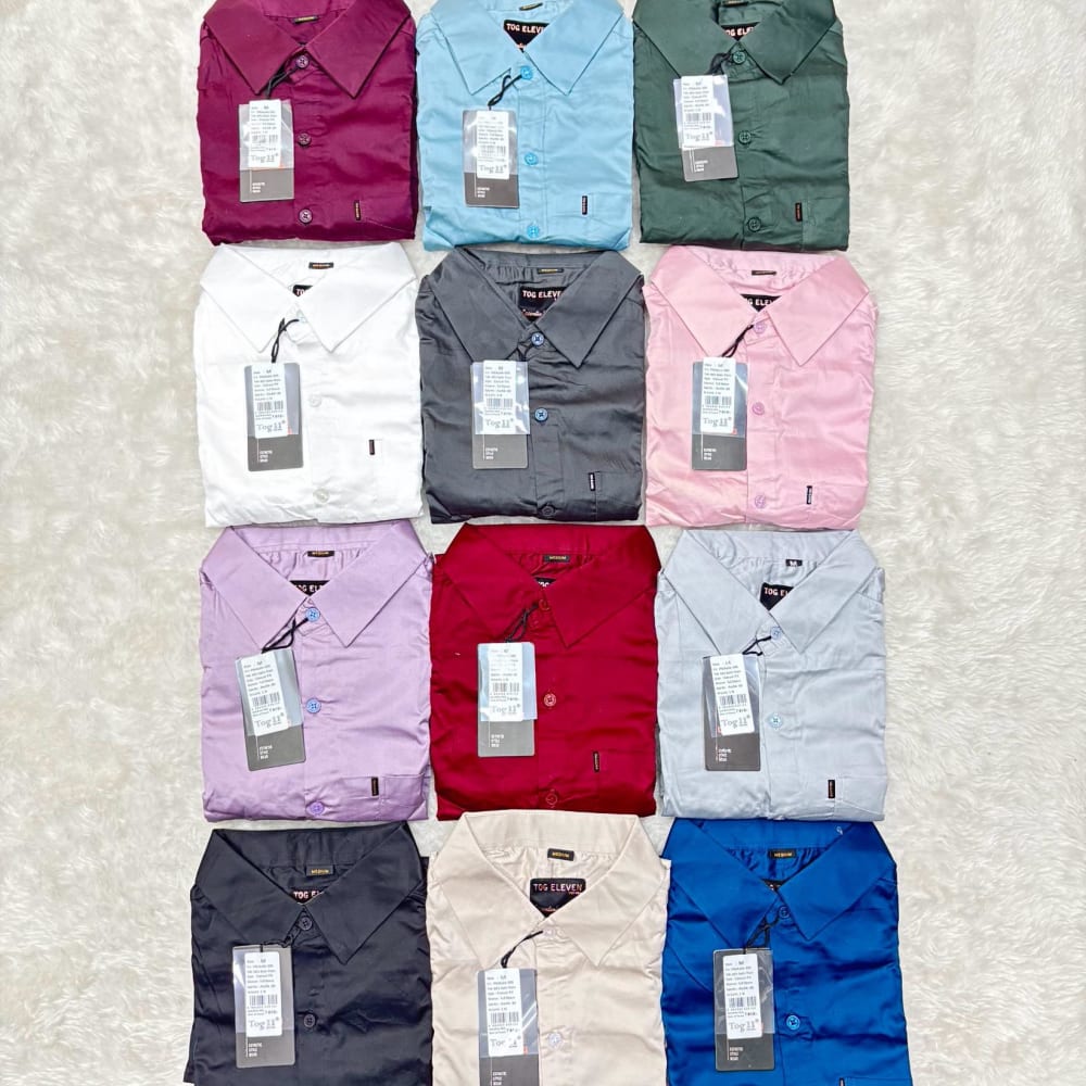 Various solid colors including maroon, light blue, dark green, white, grey, pink, light purple, red, light grey, black, beige, and royal blue. Shirt
