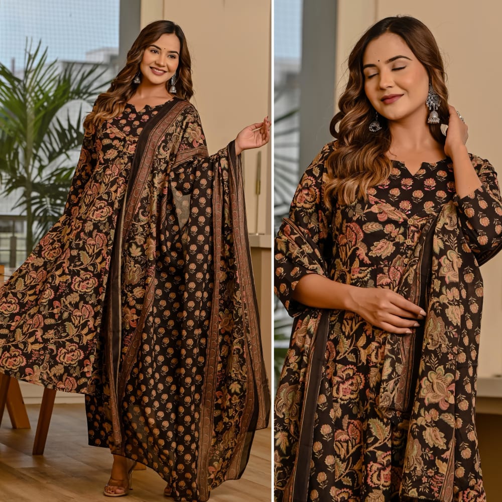 Black, Brown, Peach, and Green Salwar Kameez with Dupatta