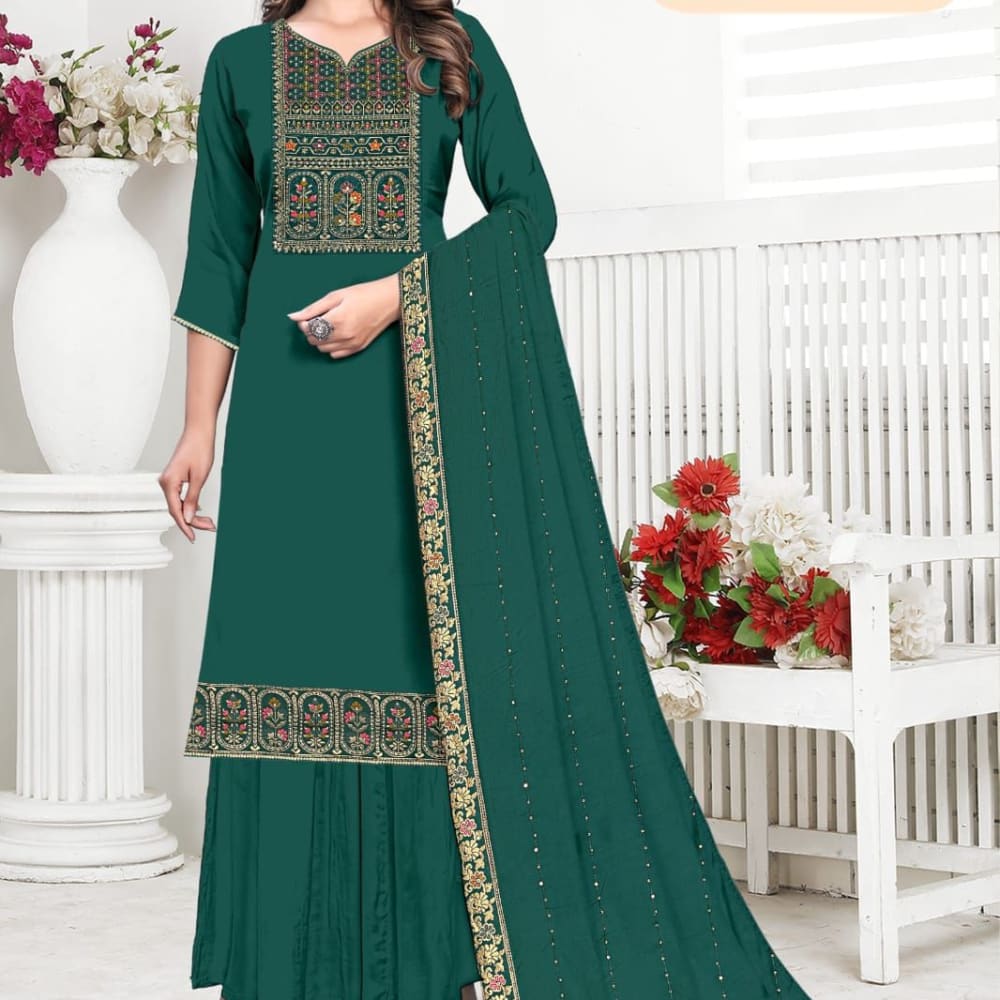 Teal, Gold, Multicolor Salwar Kameez