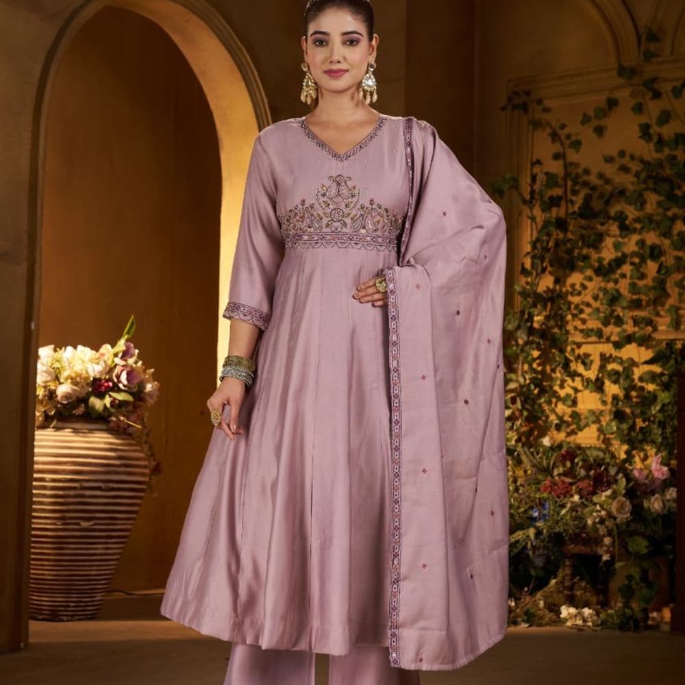 Mauve with Purple accents Anarkali Suit