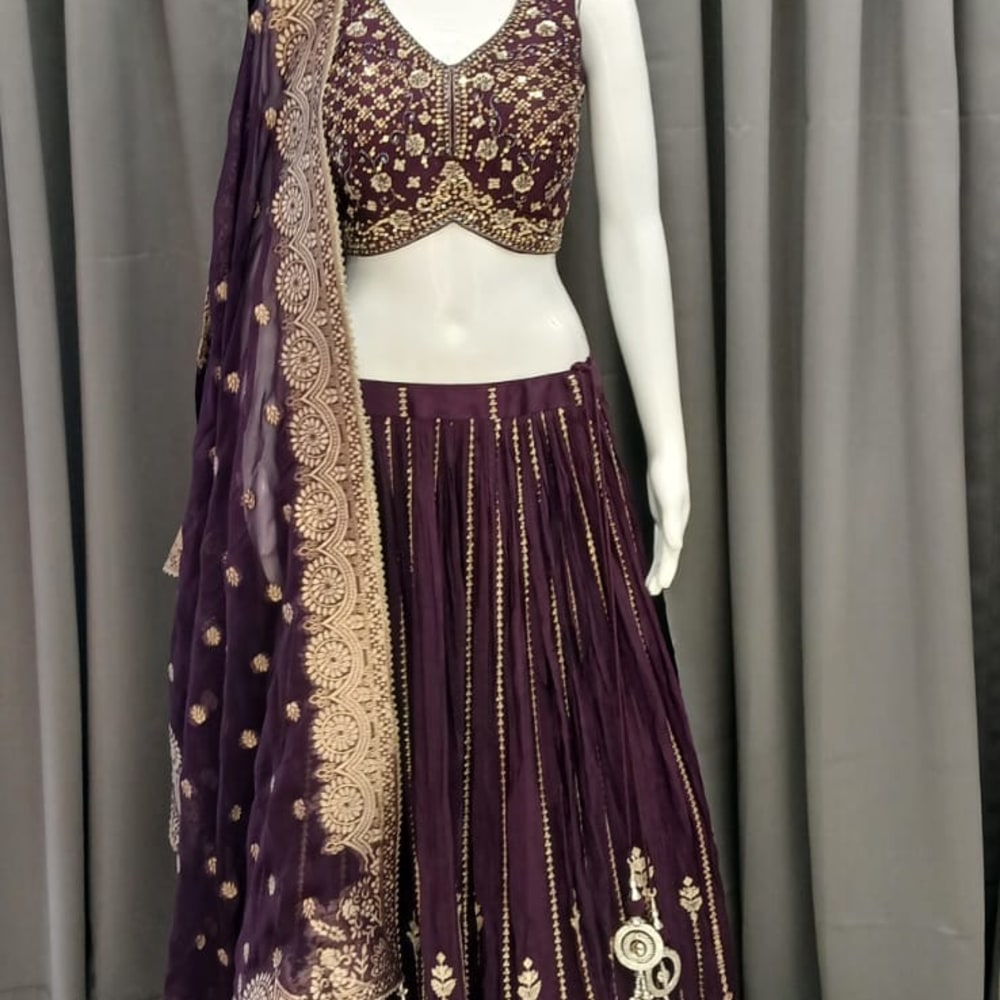 Deep Purple and Gold Lehenga Choli