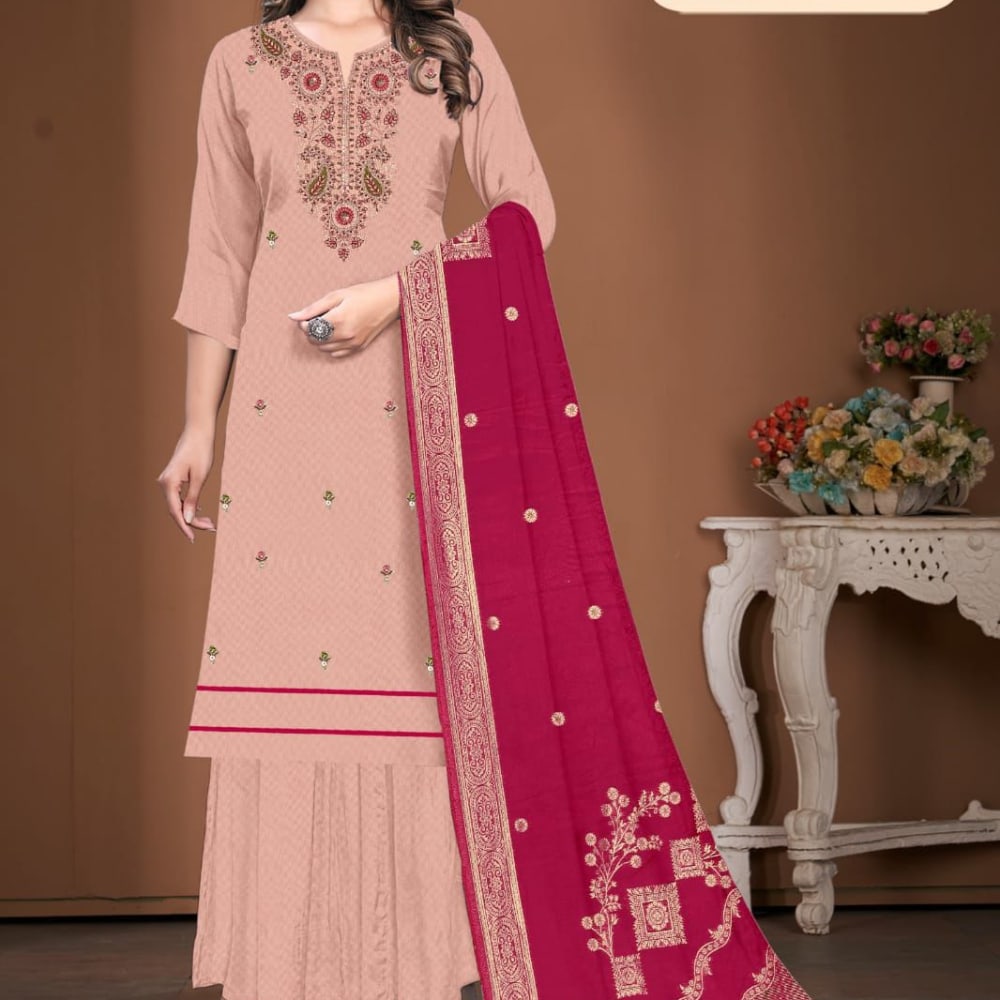 Peach and Fuchsia Salwar Kameez with Dupatta