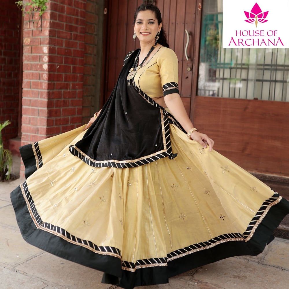 Beige, Black, Gold Lehenga Choli