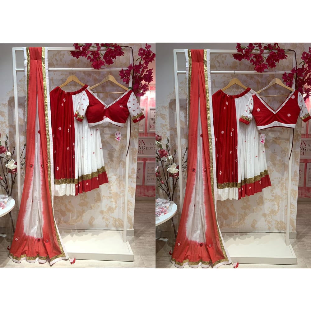 Red, White, and Gold Lehenga Choli with Dupatta