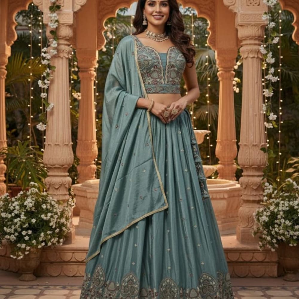 Teal, Gold, and Earthy Tones Lehenga Choli