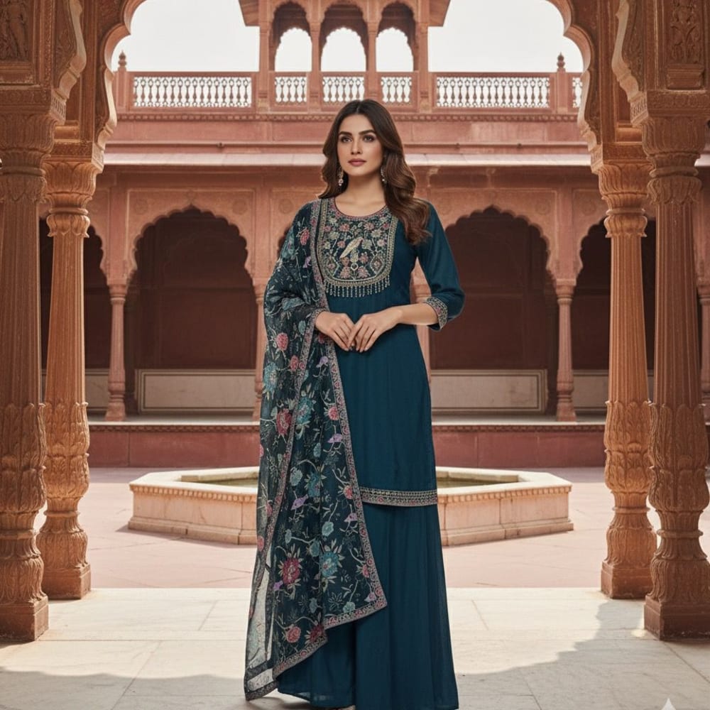 Teal, Multi-colored (Floral Print) Salwar Kameez Suit