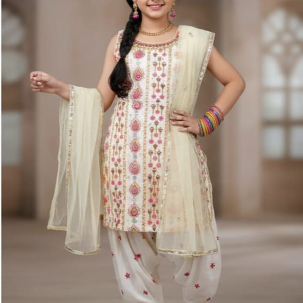 Ivory, Pink, Gold Salwar Kameez