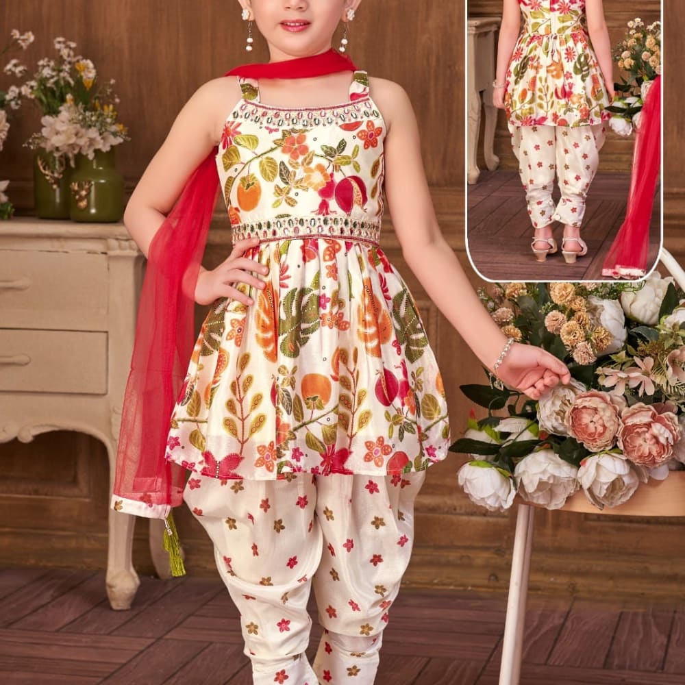 Ivory, Red, Orange, Green Salwar Kameez