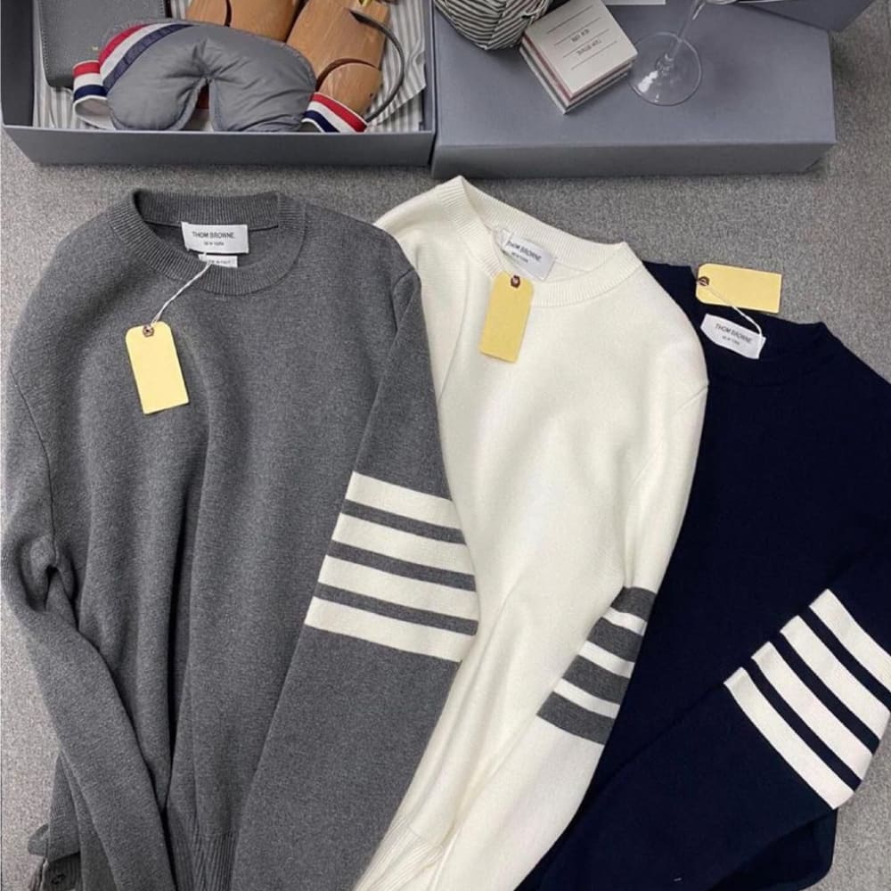 Gray, White, Navy Blue with White stripes Sweater