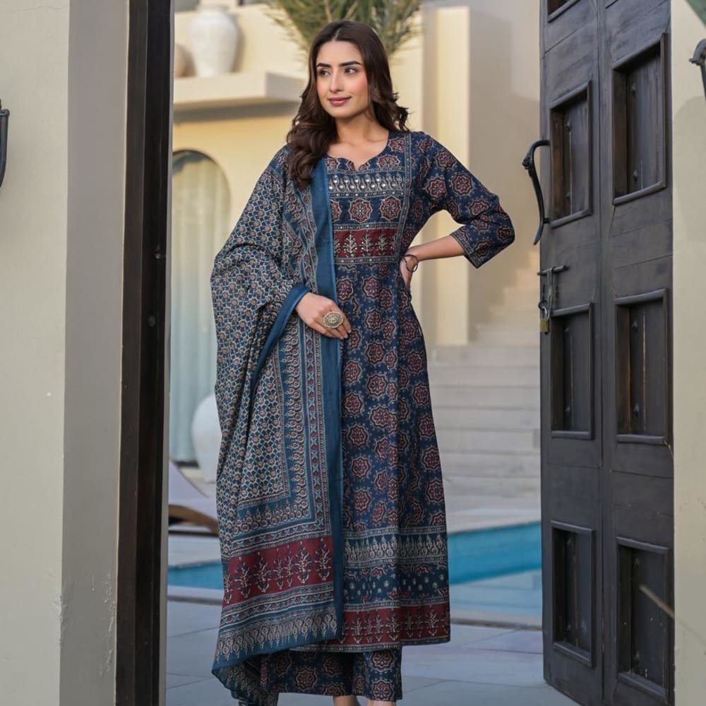 Navy blue, maroon, and beige Salwar Suit Set