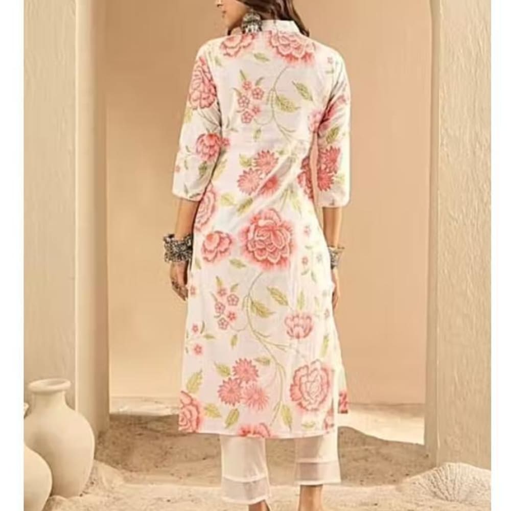 White, Pink, Green Kurta Set