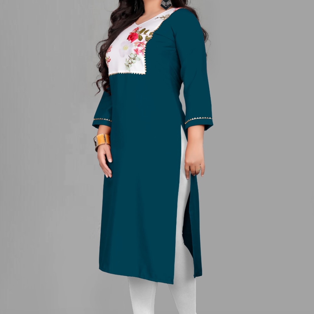 Teal, White, Floral Print Kurti