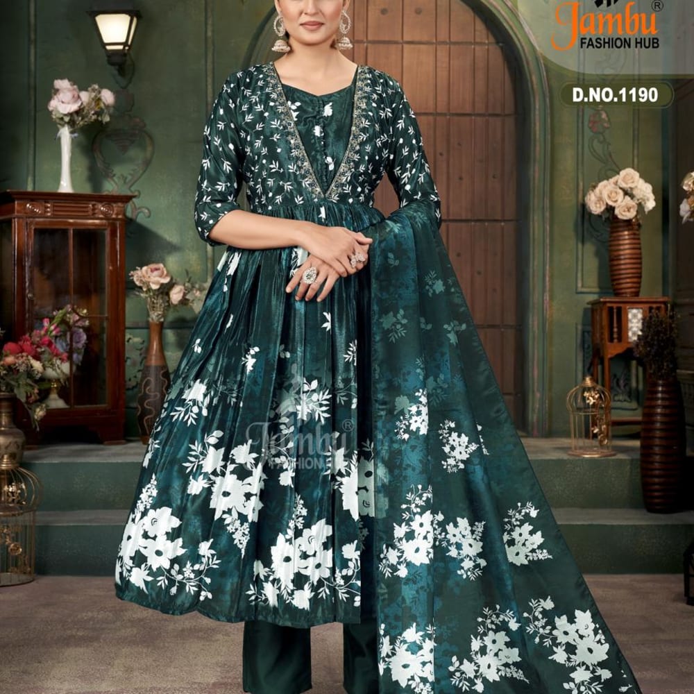 Emerald Green and White Anarkali Suit