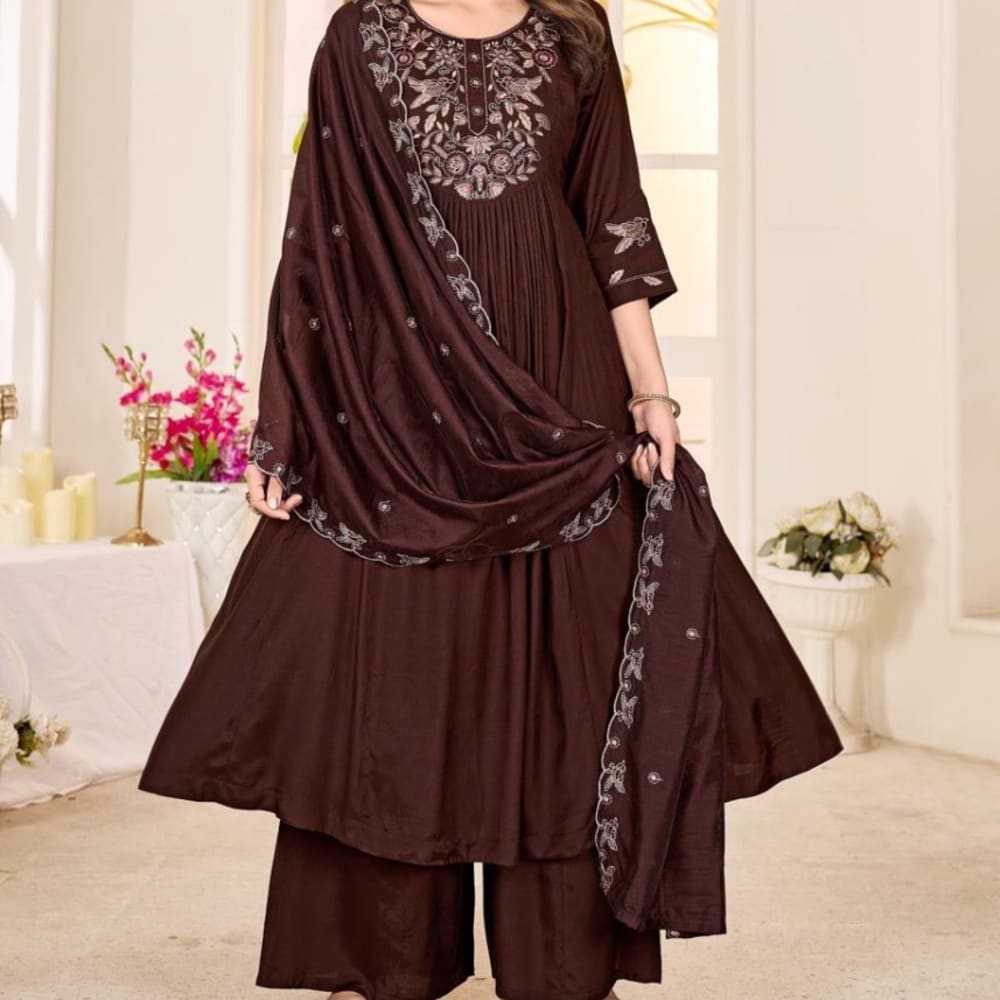 Brown, Silver Salwar Kameez Suit