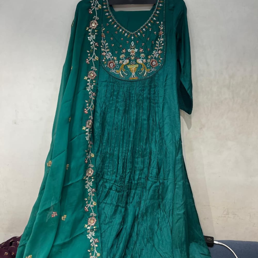 Emerald Green with Gold, Cream, and Red accents Anarkali Suit