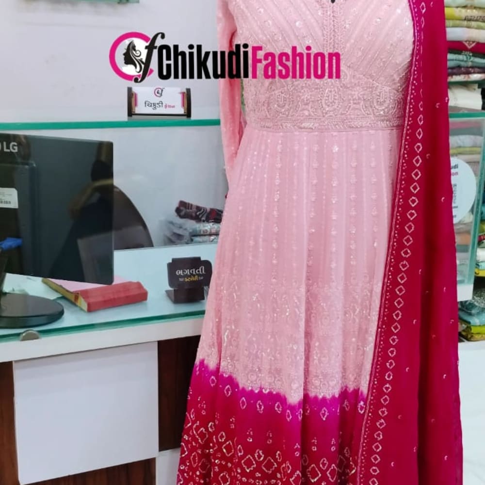Pink and Red Anarkali Dress