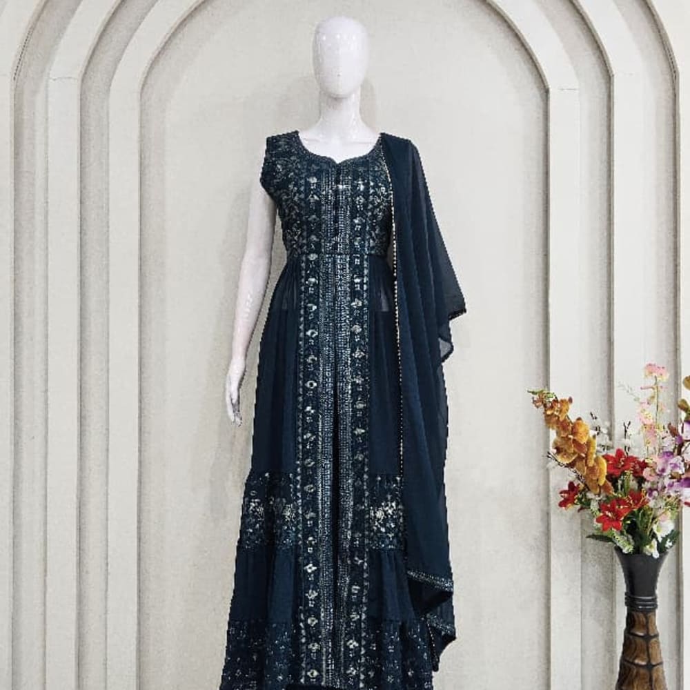 Teal and Silver Anarkali Suit