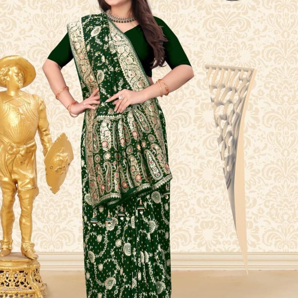 Emerald Green, Gold, Red, Cream Saree