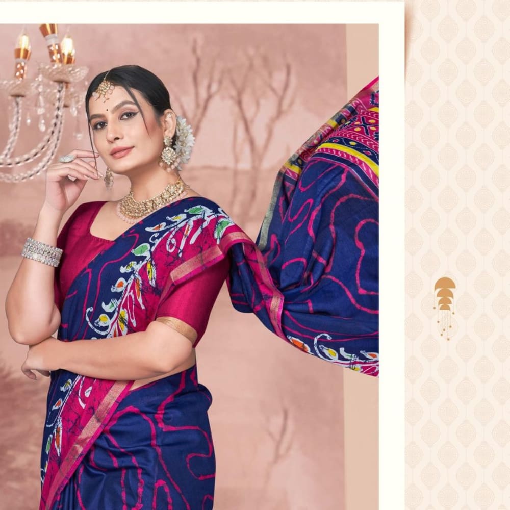 Blue, Pink, and hints of Yellow and Green Saree