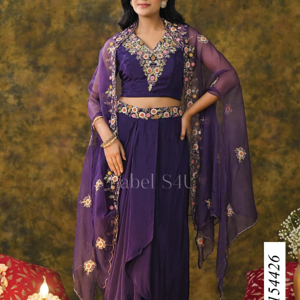 Purple with Multicolored Embroidery Lehenga Choli with Cape