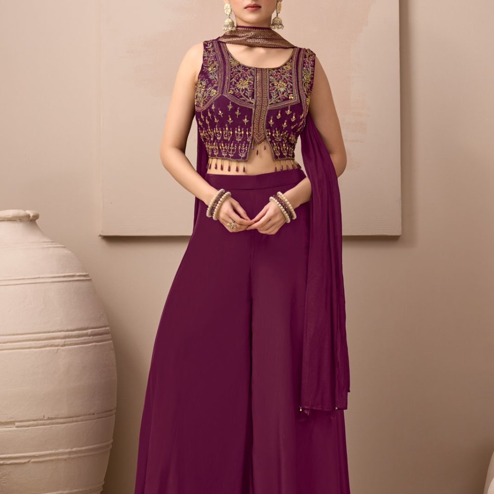 Deep Plum, Gold Palazzo Suit