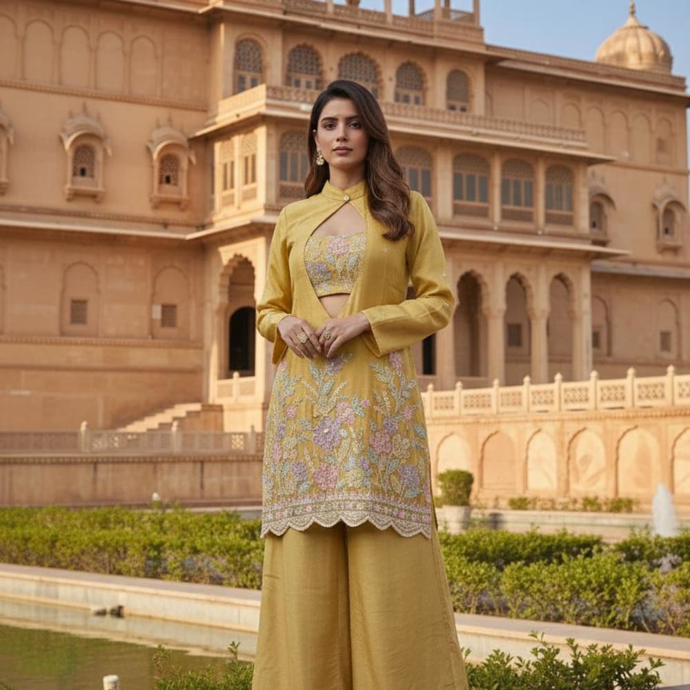 Mustard Yellow, Pastel Pink, Light Green Kurta Set