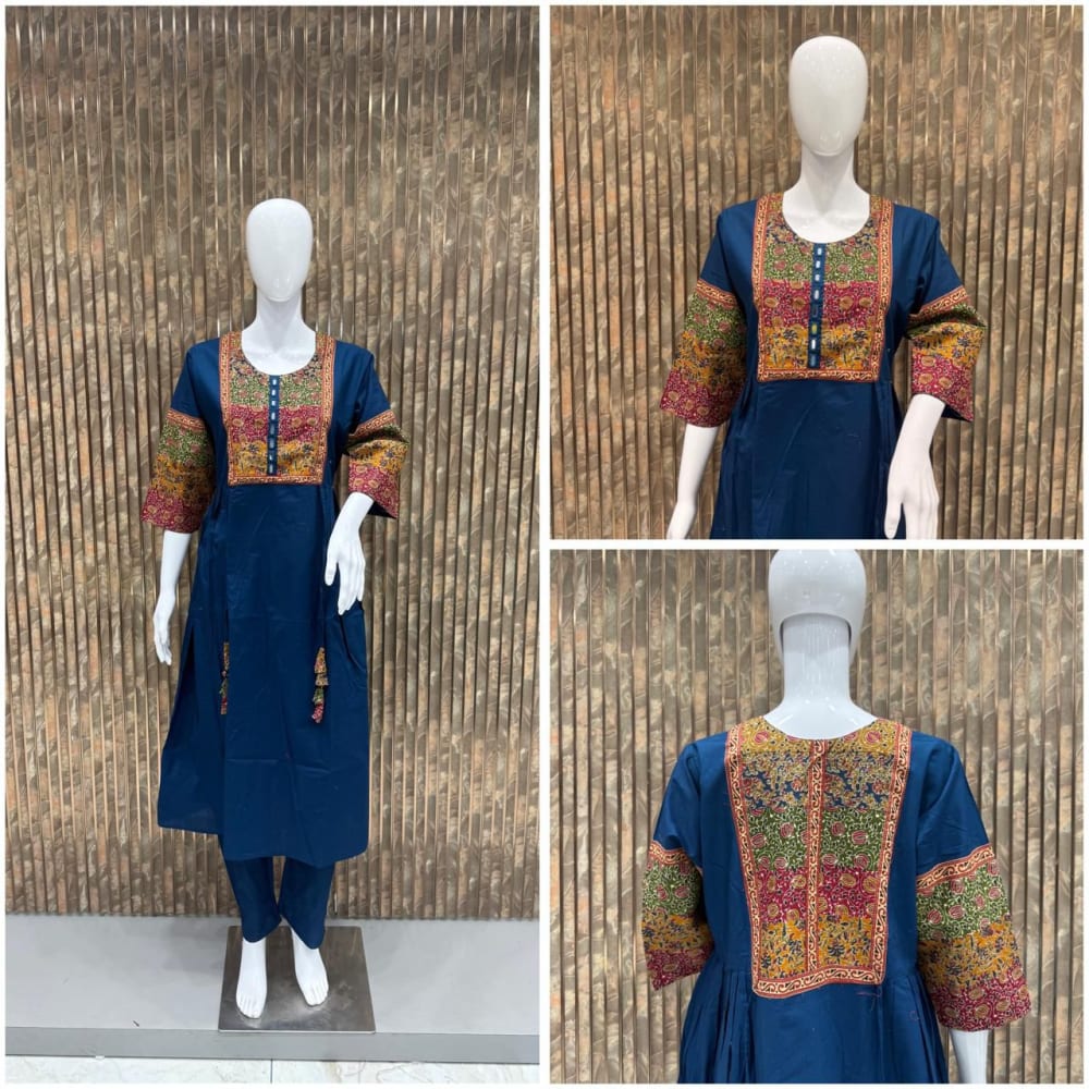 Navy Blue with multicolored embroidery Kurti with pants