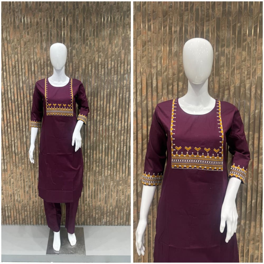Deep Plum, Mustard Yellow, White, Black Kurta with Pant