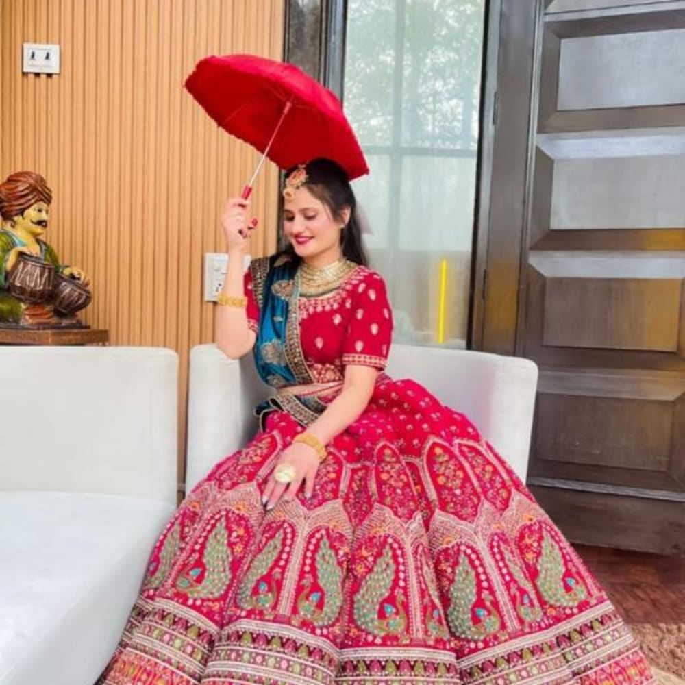 Red, Green, Gold, Teal Lehenga Choli