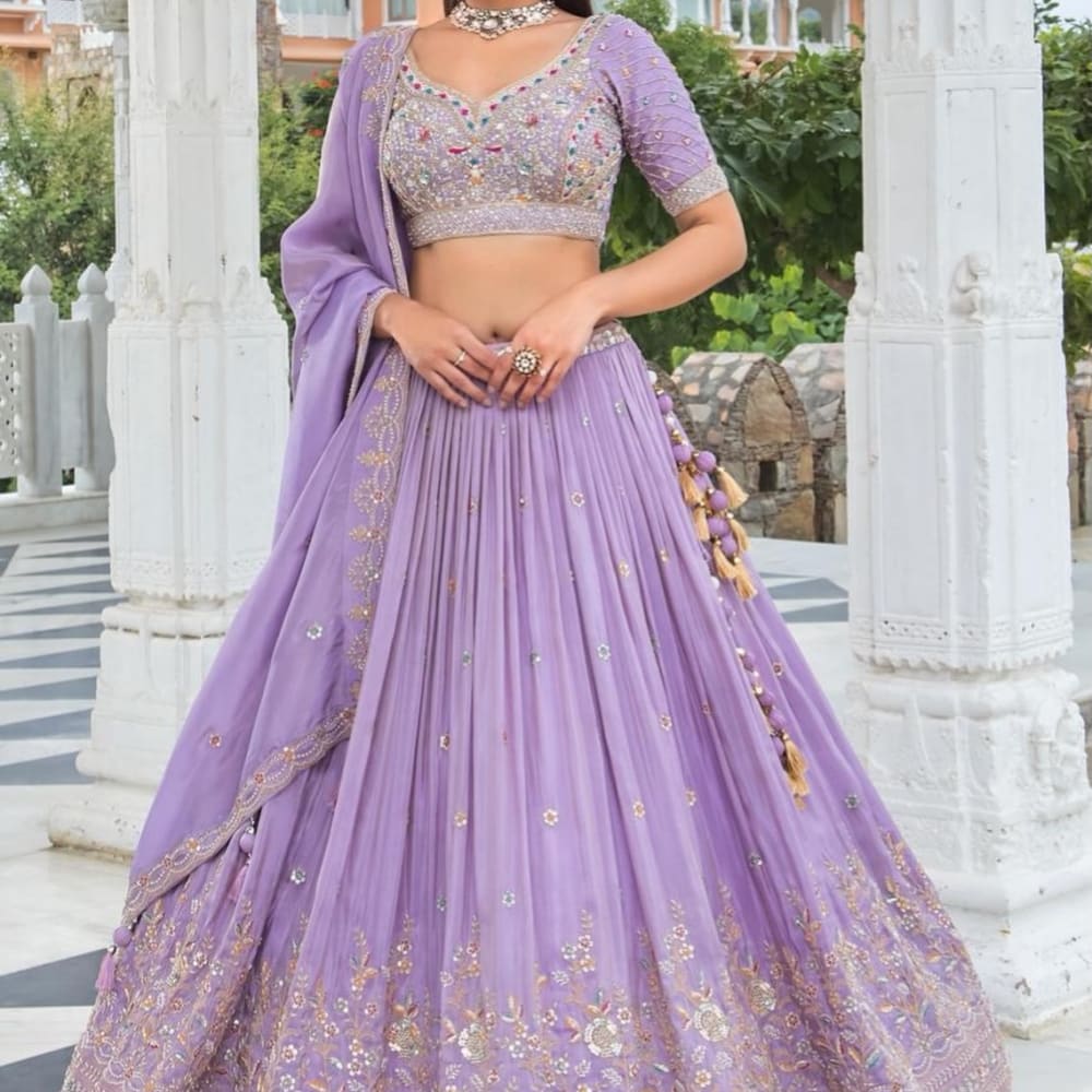 Lavender, Silver, Gold Lehenga Choli