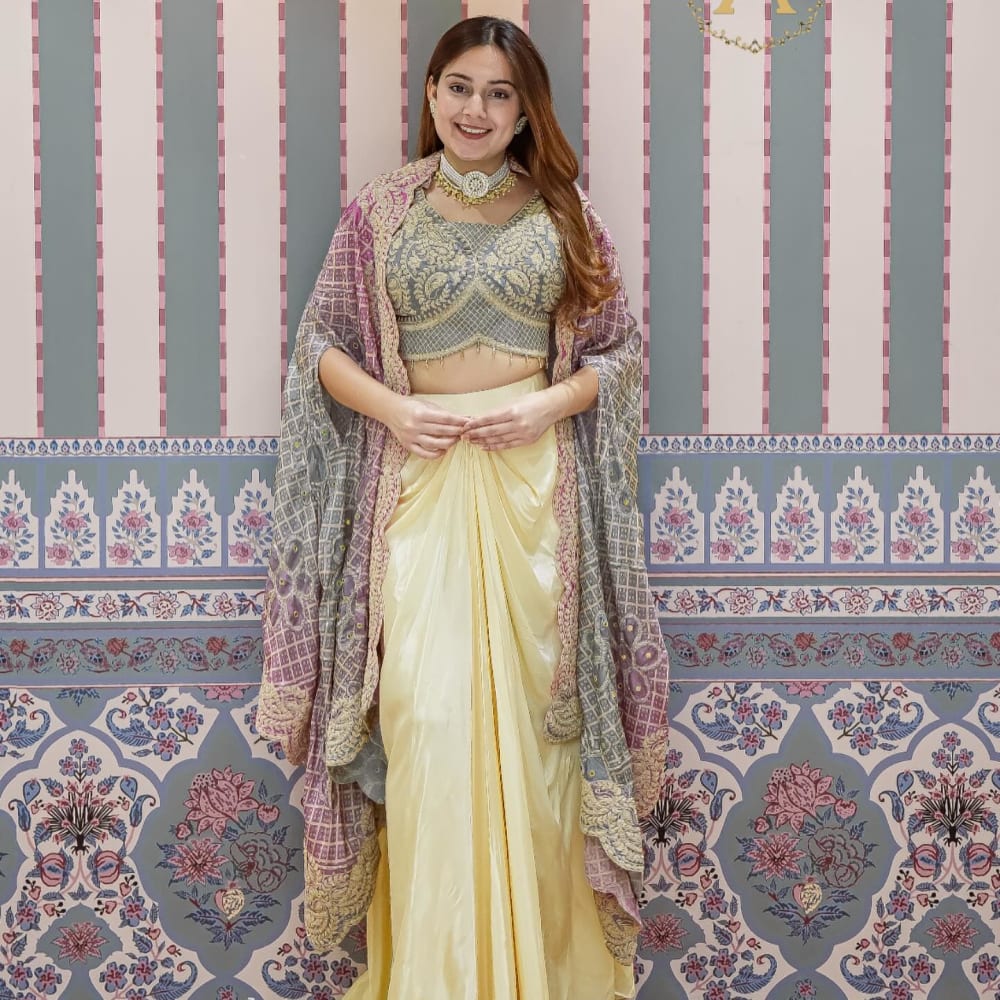 Soft Yellow, Grey, Purple, Gold Draped ensemble