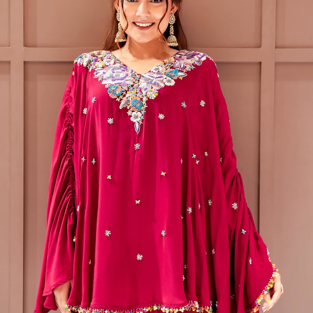 Red with Multicolor accents Kaftan/Dress