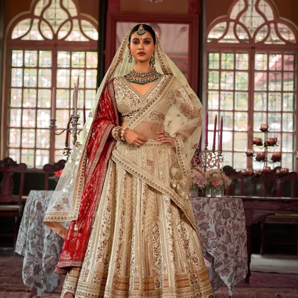 Ivory, Red, Gold Lehenga Choli
