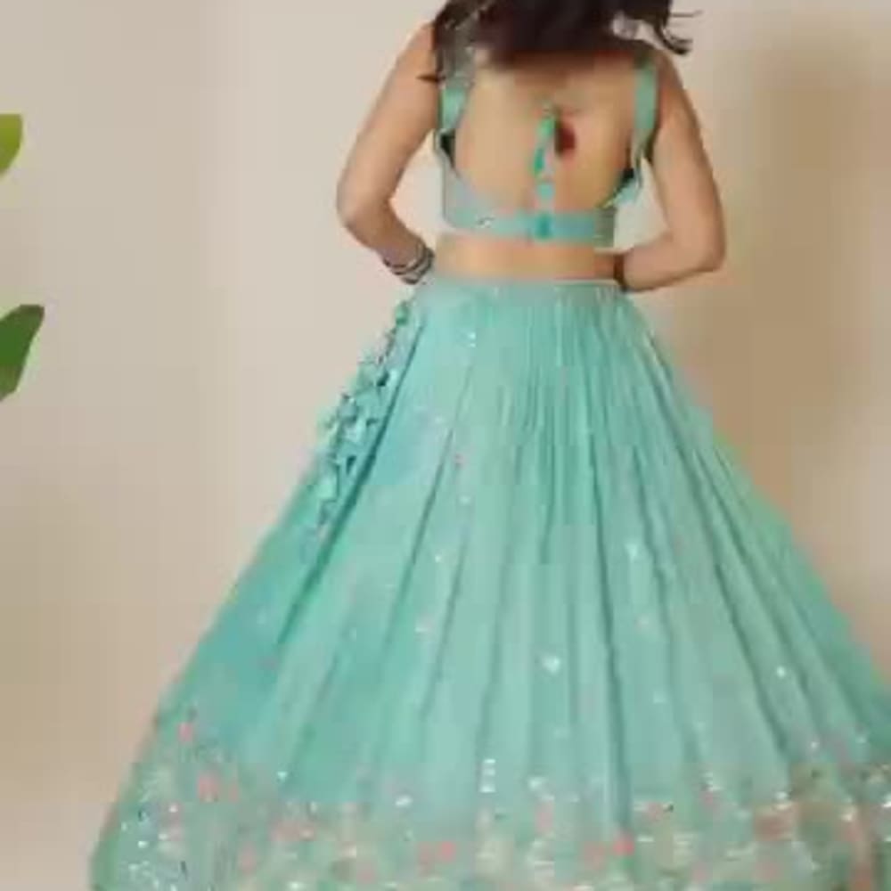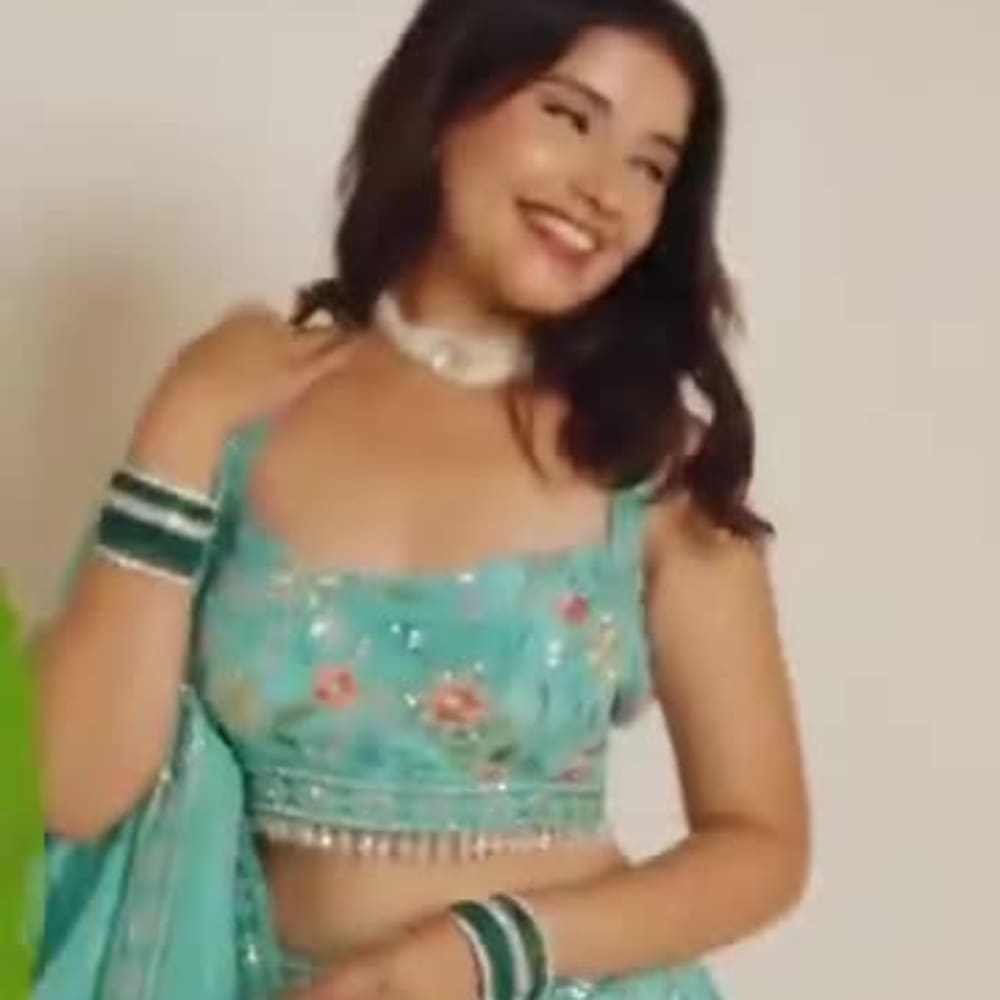 Teal, Pink Lehenga Choli