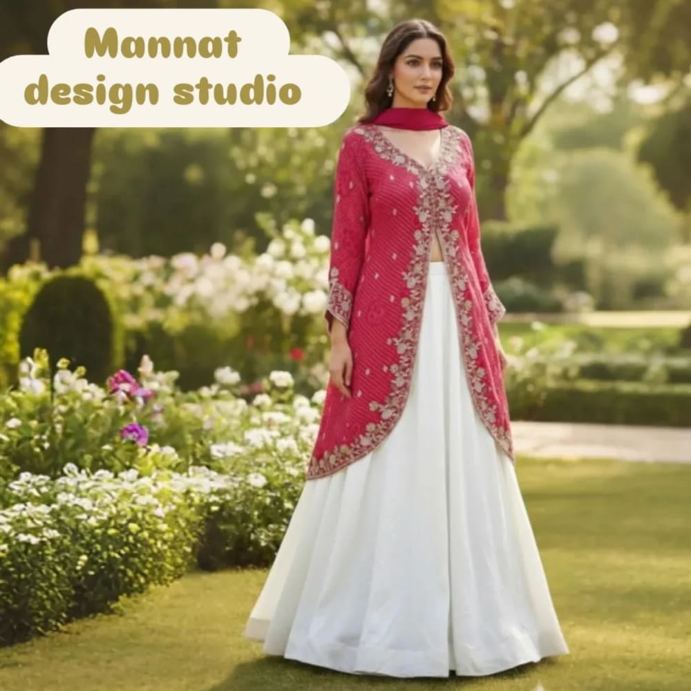 Red, White, and Gold Lehenga Set
