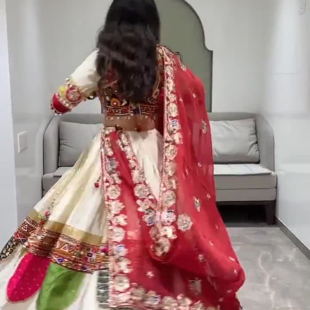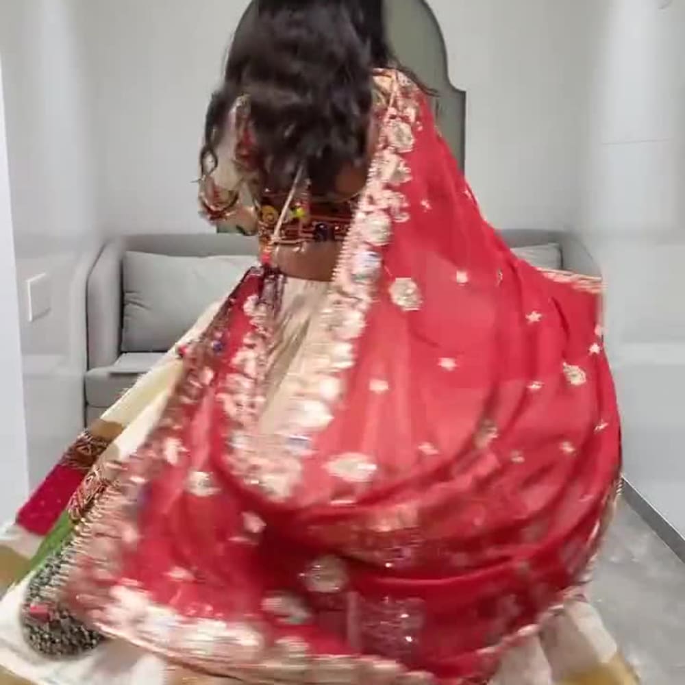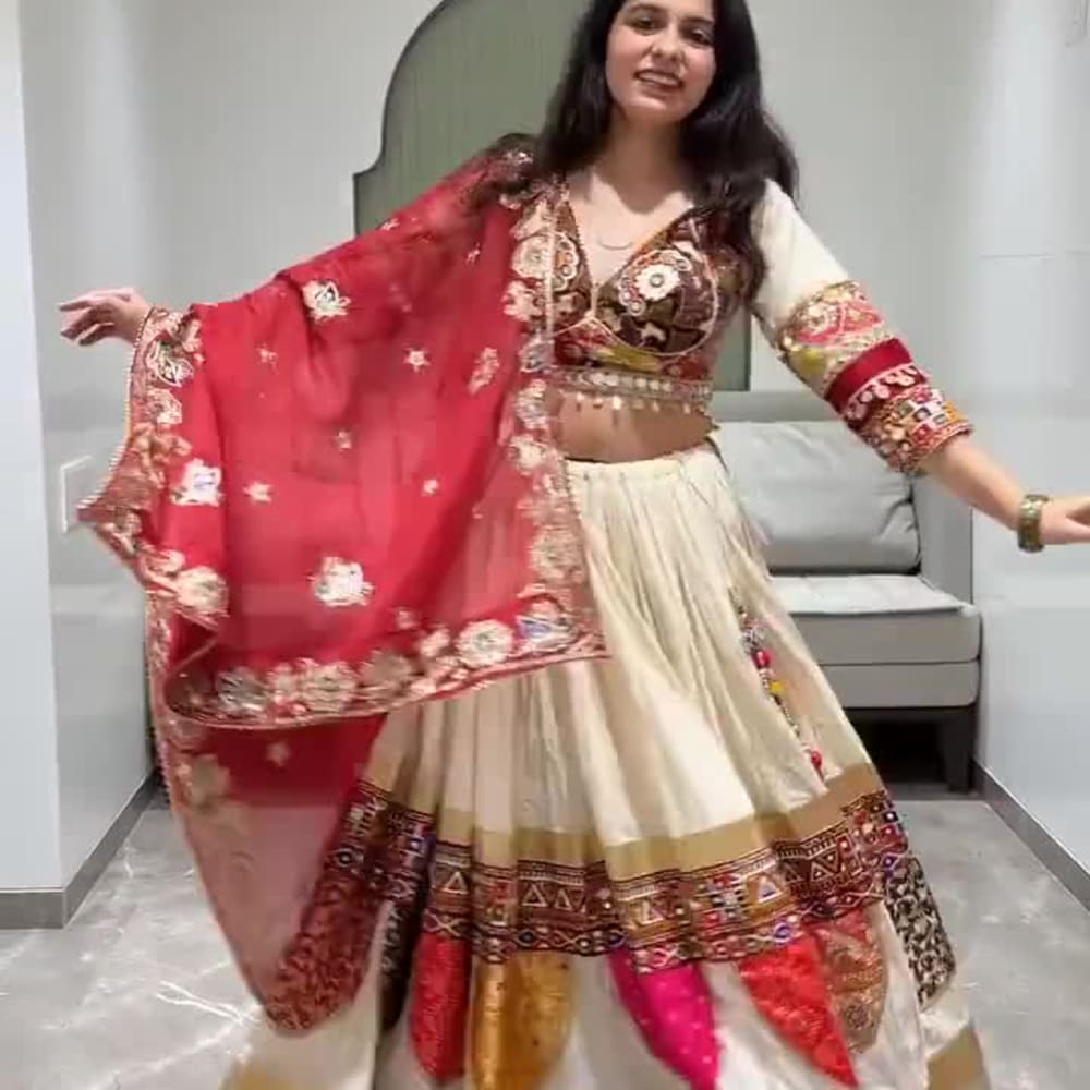 Red, Cream, Gold, and Multicolor Lehenga Choli