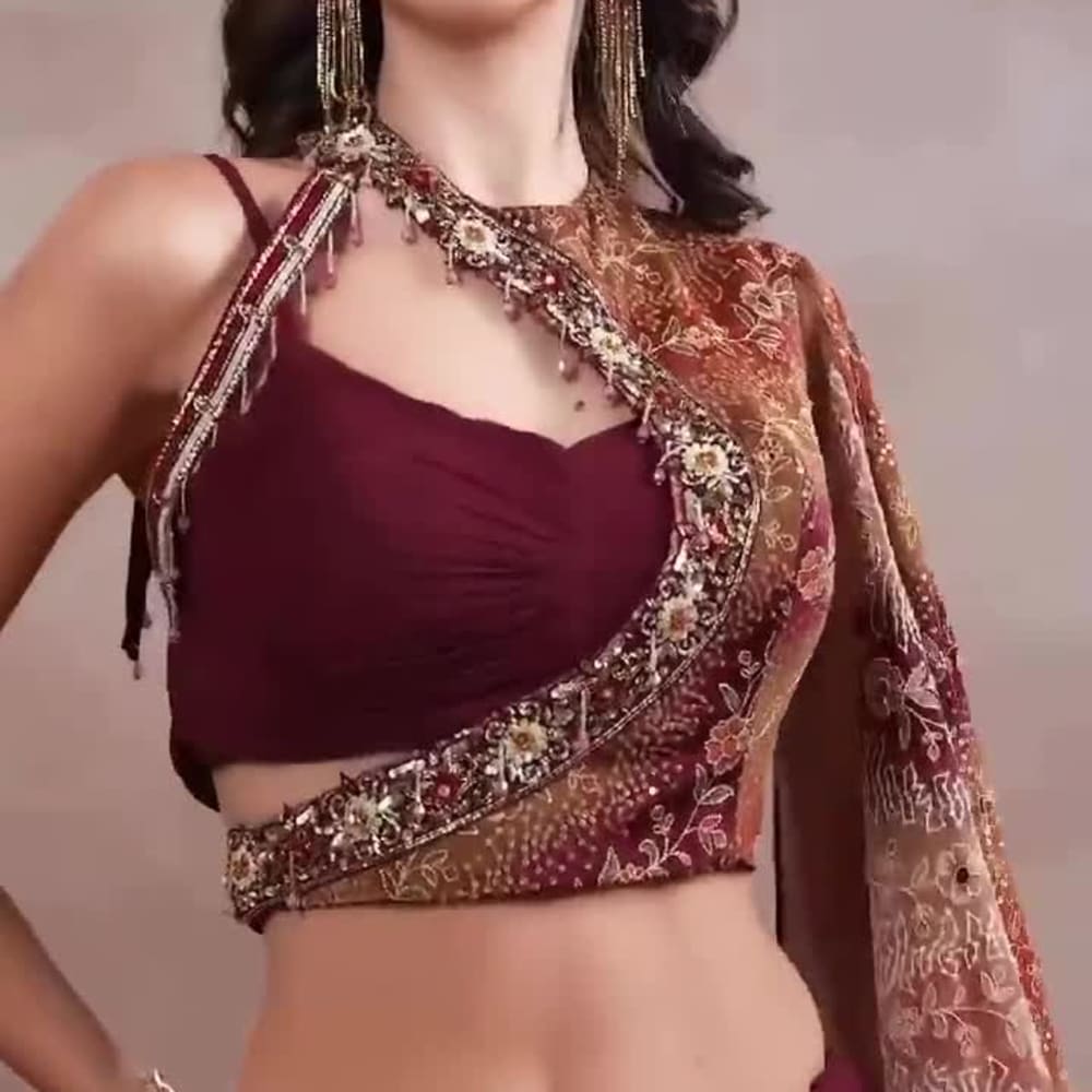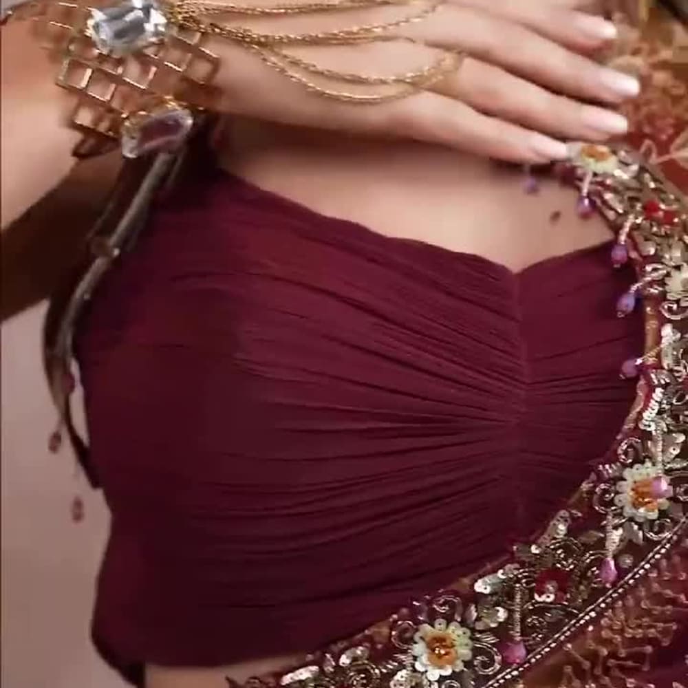 Burgundy, Beige Saree