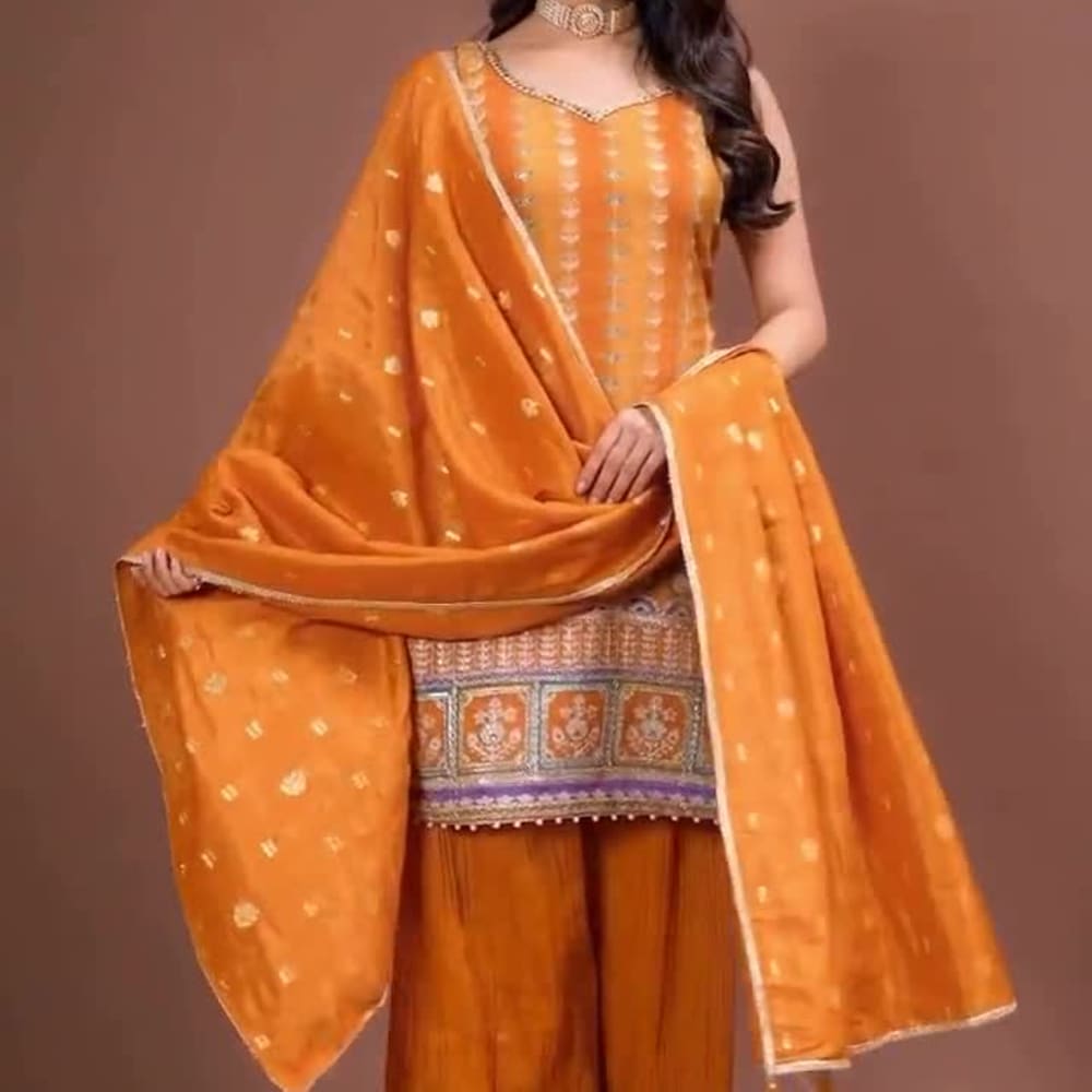 Shades of Orange, Yellow, and Green Kurta with Matching Dupatta