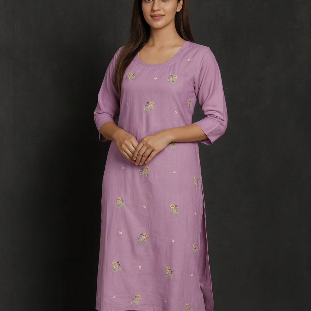 Lavender with Multicolor Embroidery Kurta with Pants