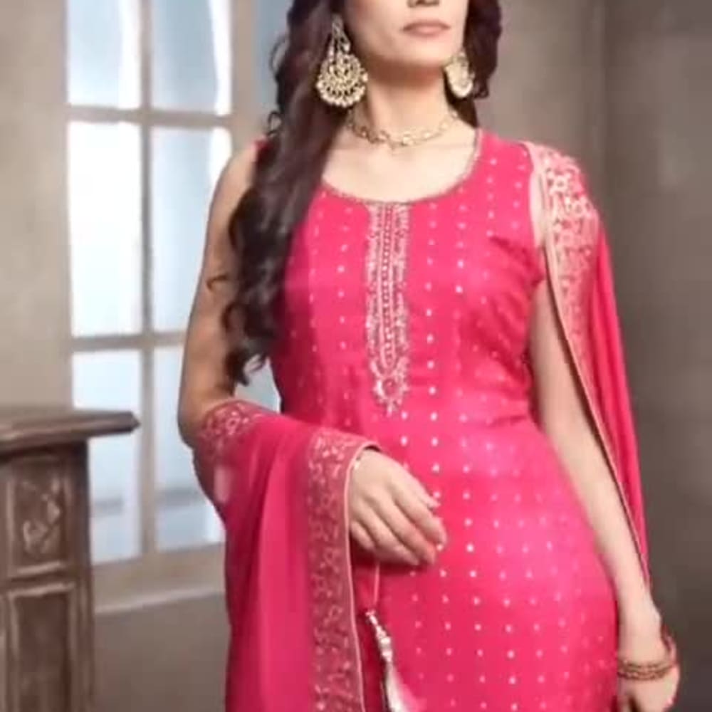 Hot Pink with Silver and Gold accents Salwar Kameez Suit