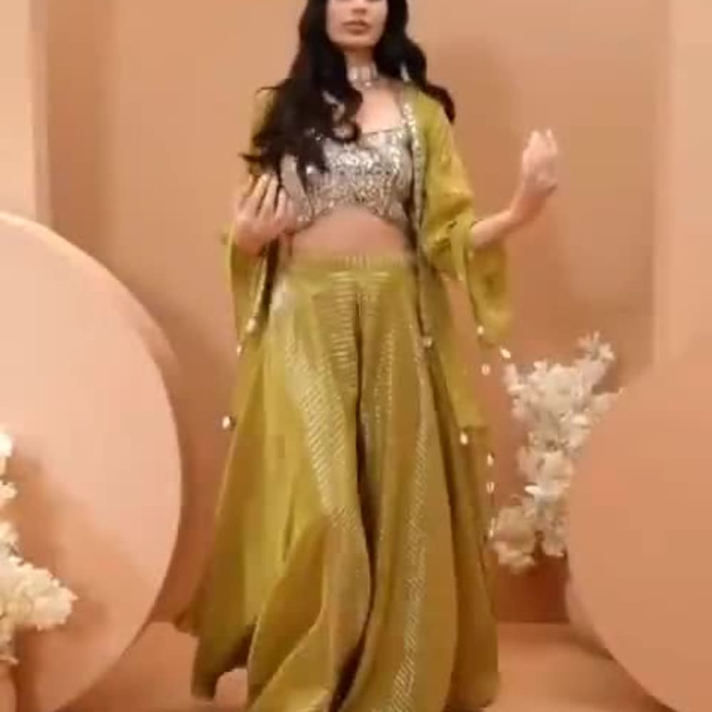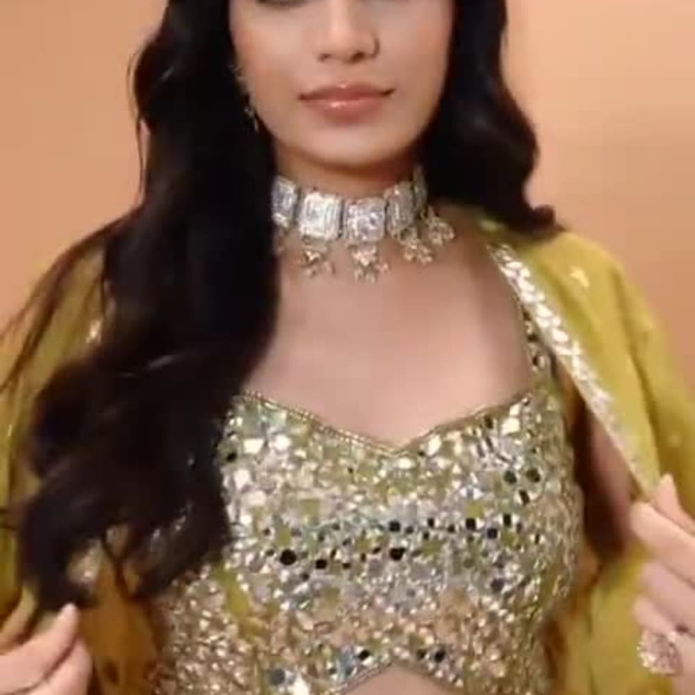 Gold and Olive Green Lehenga Choli